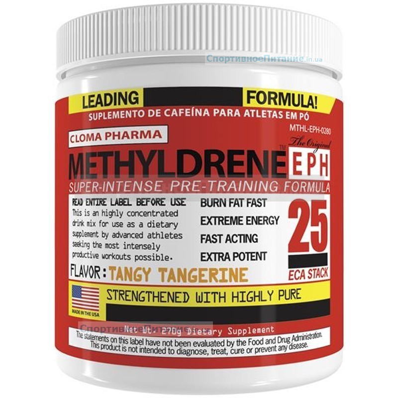 Methyldrene EPH 25 ECA – это эффективный энергетик с креатином от производителя Cloma Pharma, который способен не только активировать каждую клеточку вашего тела перед предстоящей тренировкой, но и зарядить вас дополнительной взрывной энергией и силой. Предтренировочный комплекс подойдет для спортсменов, занимающихся силовыми видами спорта, ведь именно им необходимо много сил для выполнения сложных упражнений. Methyldrene EPH 25 ECA 270 г проявляет такие эффекты:
