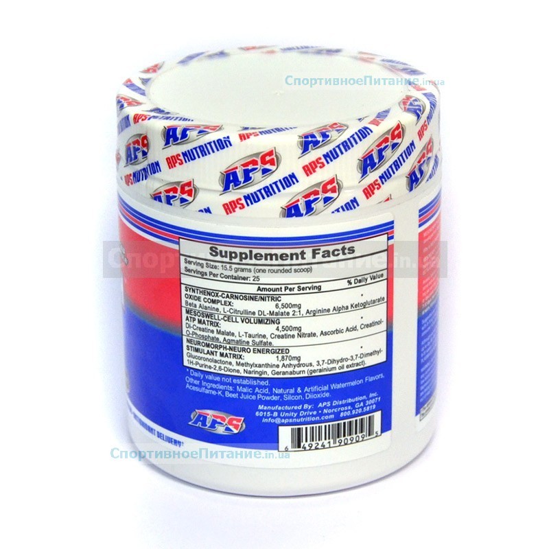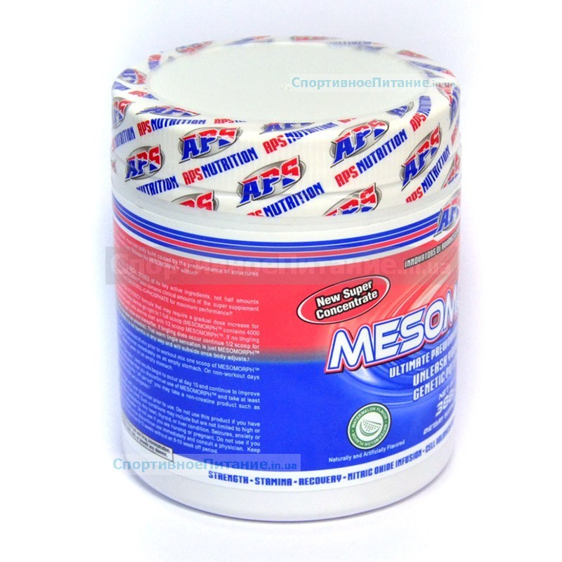 Спортивное питание залог качественных и эффективных тренировок. Mesomorph от APS - уникальный предтренировочный комплекс, в котором используются полноценные рабочие компоненты (Synthenox-Carnosine Oxide, Mesoswell-Cell Volumizing ATP, Neuromorph-Neuro Energized Stimulant).