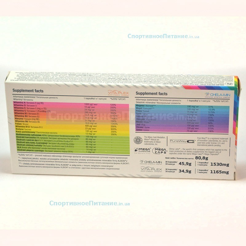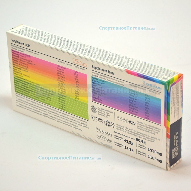 Vita-Min Multiple Sport от компании Olimp Labs – это один из самых обширных по составу поливитаминных комплексов, подходящий для сбалансирования всех недостающих компонентов в организме человека, независимо от его возраста. Особенностью его является наличие большой группы растительных экстрактов, а также витамины и минералы в виде хелатных соединений. Хелатные формы обеспечивают максимально быстрое и полное усвоение компонентов, чем самым позволяя работать каждому элементу в полной мере.